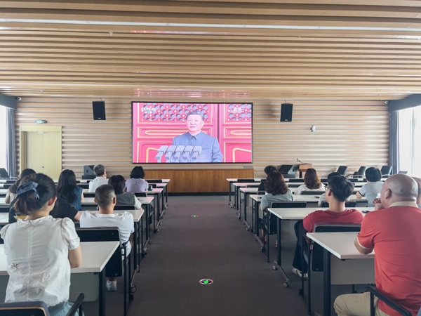 上午9時(shí),全體員工聚精會(huì)神地觀看直播畫面,不時(shí)發(fā)出陣陣贊嘆。當(dāng)國(guó)旗護(hù)衛(wèi)隊(duì)邁著鏗鏘有力的步伐走向升旗區(qū),當(dāng)雄壯的《義勇軍進(jìn)行曲》響徹天安門廣場(chǎng),觀看現(xiàn)場(chǎng)的員工們自發(fā)起身,與現(xiàn)場(chǎng)同步高唱國(guó)歌,表達(dá)對(duì)祖國(guó)的深切熱愛和崇高敬意。