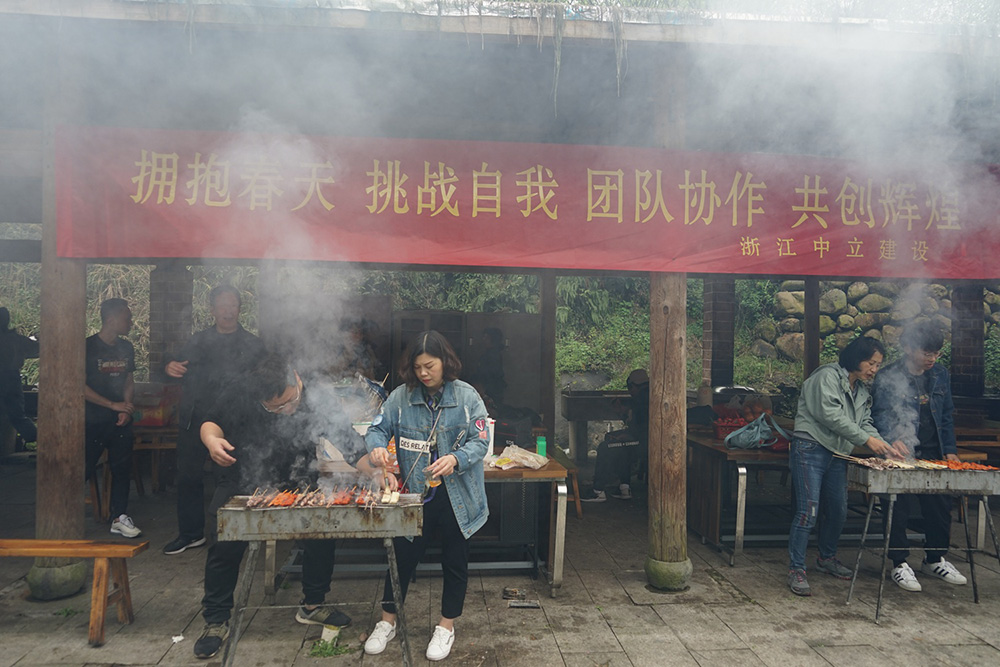 拓展穿越活動結束后,大家一起動手包餃子、燒烤,每個人都參與其中,樂此不彼。