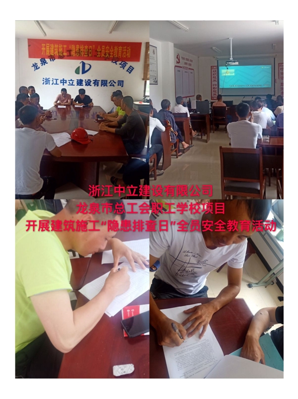 我公司嚴(yán)格落實(shí)麗水市住房和城鄉(xiāng)建設(shè)局(麗建便函〔2020〕75)號(hào)《關(guān)于開展2020年全市建筑施工“隱患排查日”活動(dòng)的通知》文件精神,所有在建項(xiàng)目在5月10日(星期日)暫停施工一天,進(jìn)行隱患自查自糾和全員教育。