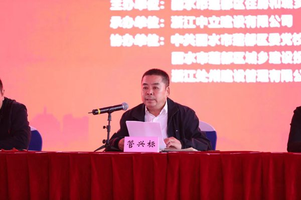 蓮都區副區長管興標、蓮都區建設局副局長吳大勇、蓮都區委黨校常務副校長陸朝霞、區建投公司副經理劉良、浙江中立建設有限公司董事長周健、浙江處州監理總經理王建武主席臺就座,蓮都區建筑施工、監理企業代表及相關主管部門代表參加觀摩會。